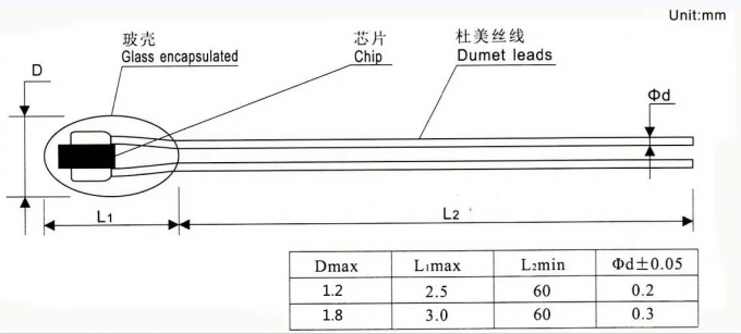 Linkun Electronics is the first company in China to launch a probe diameter of 0.8MM radial glass-sealed negative temperature coefficient temperature-measuring NTC thermistor. The launch of this new product fills the gap in China and breaks the long-term dependence on imports of miniature high-precision NTC thermistors. pattern. This product is mainly suitable for equipment requiring high-speed response or ultra-thin casing and temperature detection in narrow places. Small-volume NTC thermal time parameter: (0.6 seconds) in still air, dissipation parameter: 10MΩ lead wire and glass at 0.25mW/℃ between.
